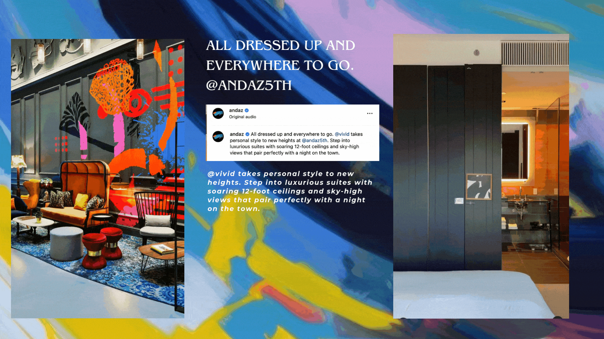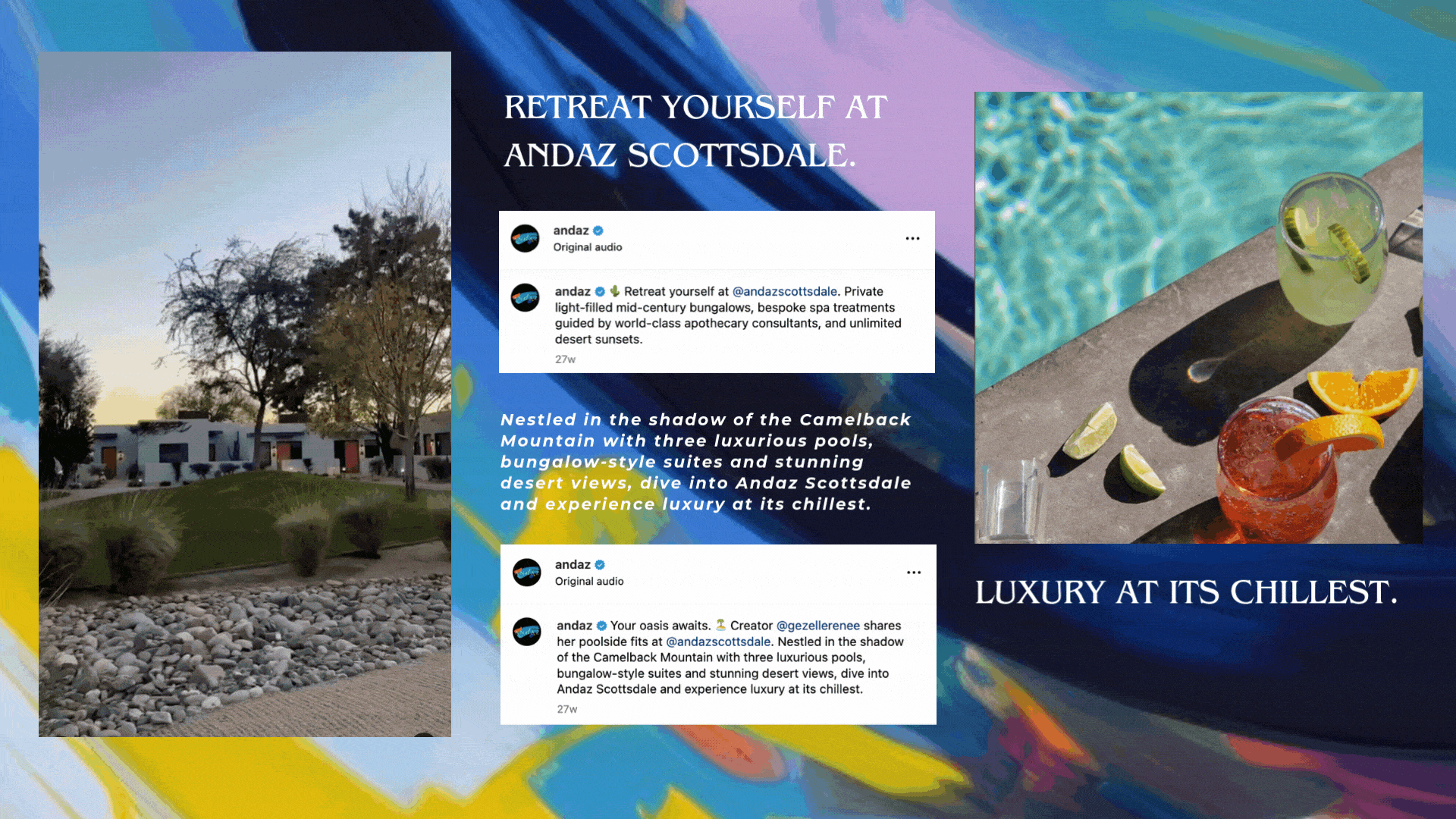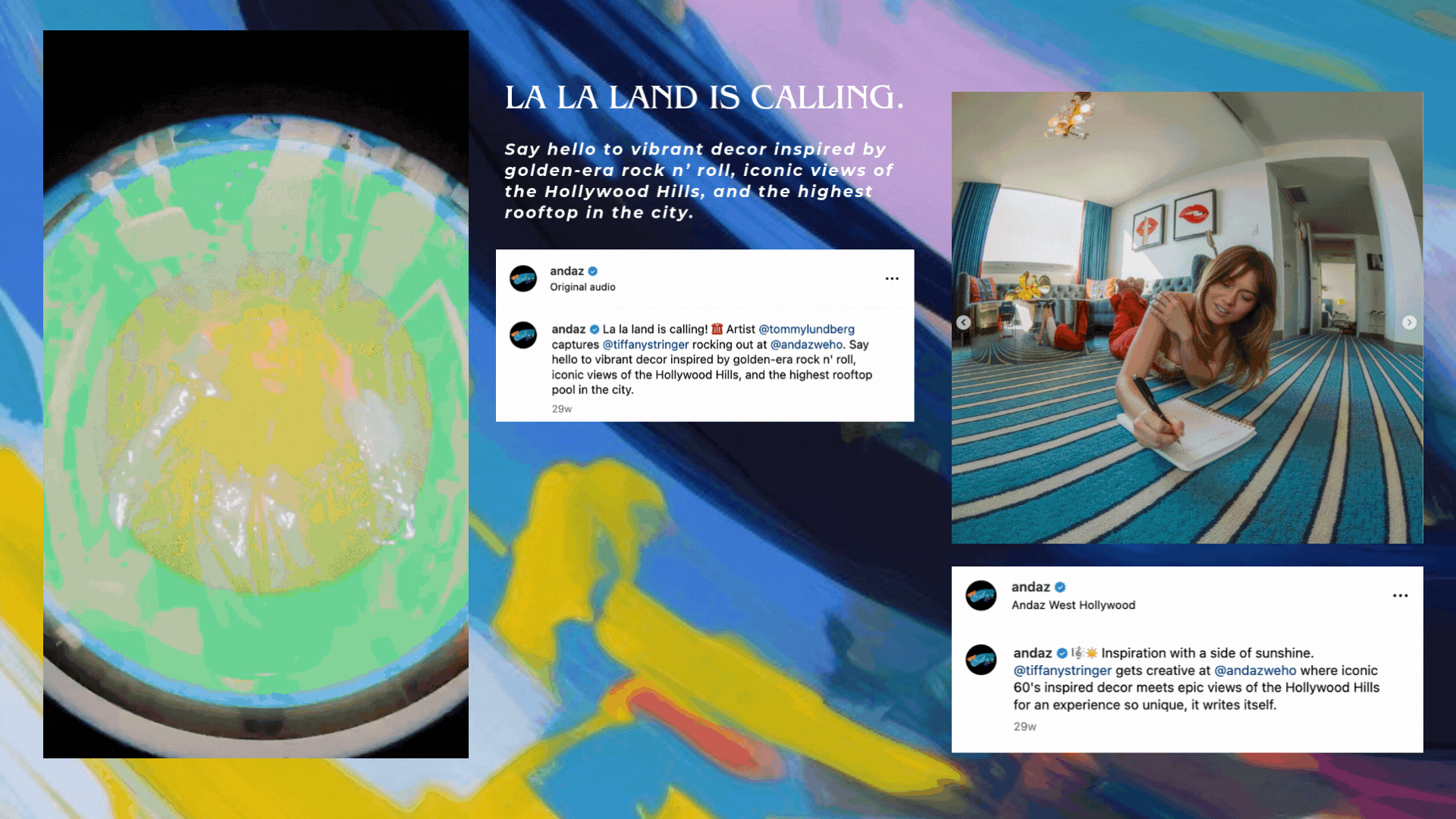 The Andaz Be Like No One’s Watching campaign celebrates self-expression, individuality, and the transformative power of travel. We teamed up with ten global influencers to create unique social content highlighting the bespoke experiences available at Andaz properties around the world.